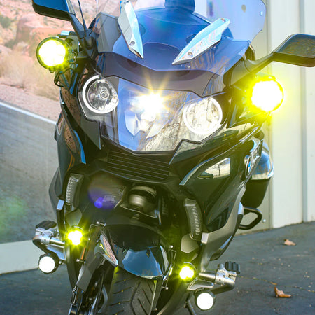 World’s most advanced LED auxiliary light – brighter than any high beam, flood light pattern, fully dimmable, no added switches to your bike, and multiple mounting options.