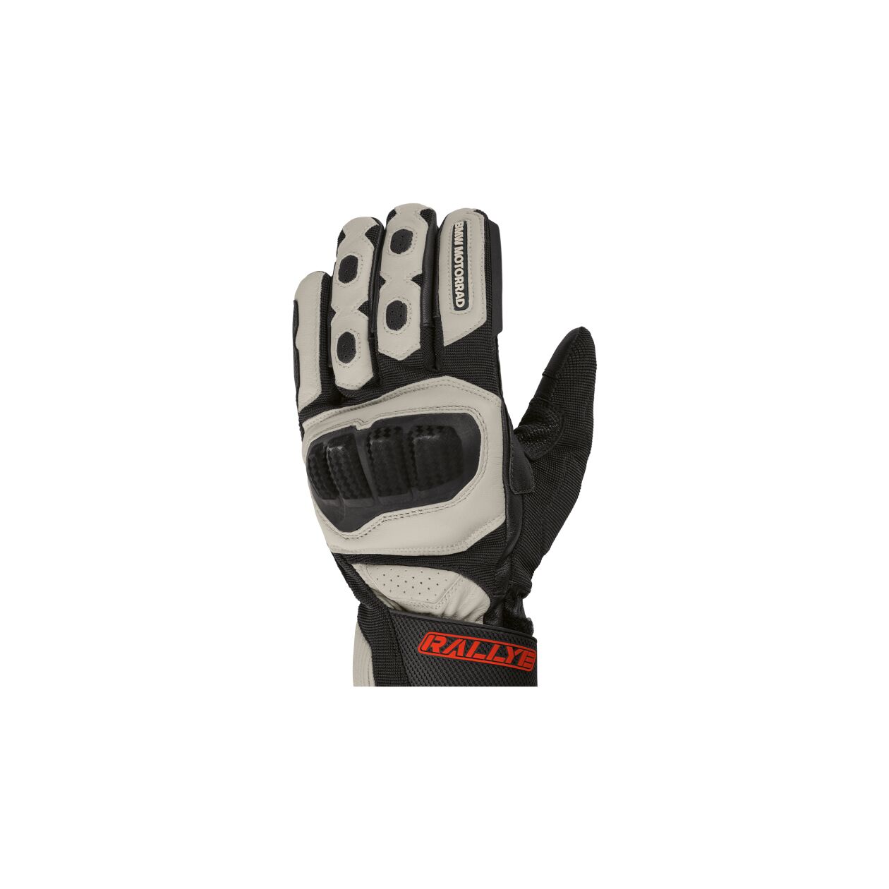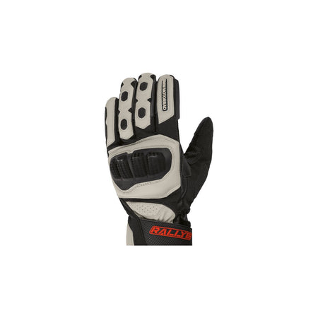 The windproof and watertight GS Rallye GORE-TEX gloves are predestined for off-road use. The palm made of goatskin makes for the best-possible grip. A large knuckle shell made of hard plastic lined with shock-absorbing foam protects against impacts.